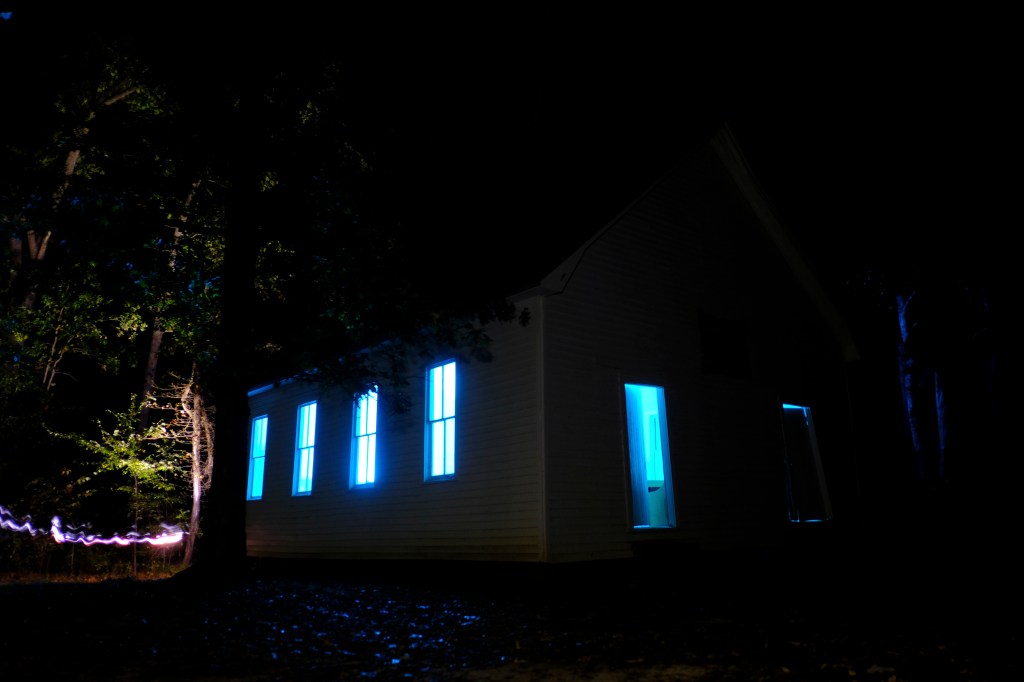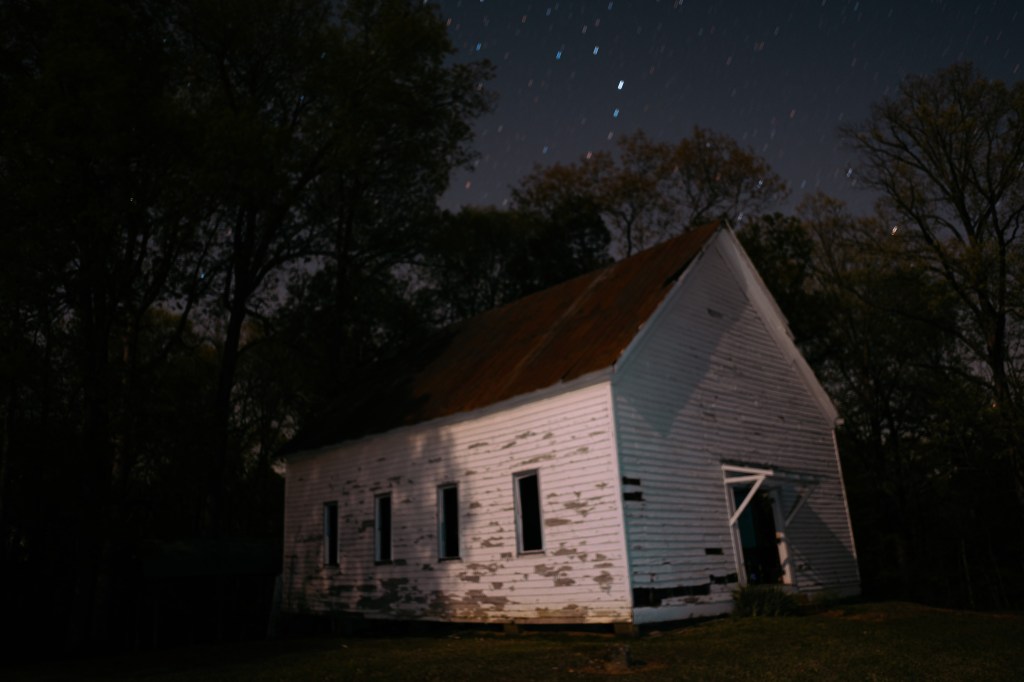Lucky for us we’d shown up at the beginning of sunset so I got a few quick, wonderful shots of the castle backlit. I was however worried how long the light would last. So, with the initial awe over with we spread out. Evan immediately located the man who built Greenback Castle Floyd “Junior” Brown. As Evan went over to press the flesh Jay and myself wandered around the front of the castle wall to shoot the oddities that were everywhere. In the lawn there were monuments to God. Toy Soldiers stood at one corner and a space ship, and a canon at other points on the lawn.