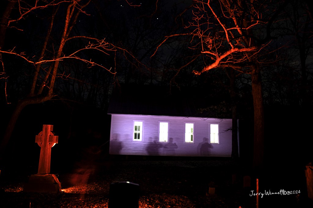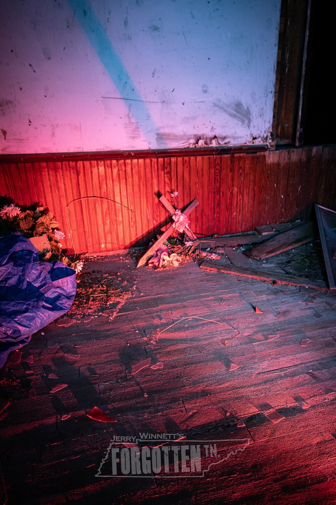 I stepped away from the cemetery and returned to the path to begin my exploration of the inner chambers of Greenback Castle. I made my way towards the voices of my companions, and our host Junior who was telling them about the time the FBI had come to see the images of Saints and Devils trapped in the Castle wall. Stepping into one small hall just off the path led me to a small courtyard where a Devil was held prisoner. I don’t know if there actually was one or not, but there was a mini castle tower in one corner, and what looked like the back of a fireplace with a coat of arms too. I found the doll at the bottom to be a bit offsetting.