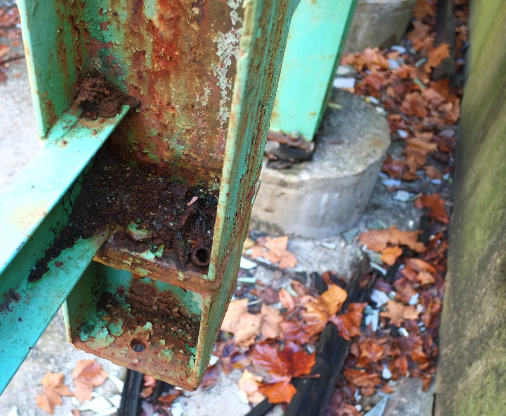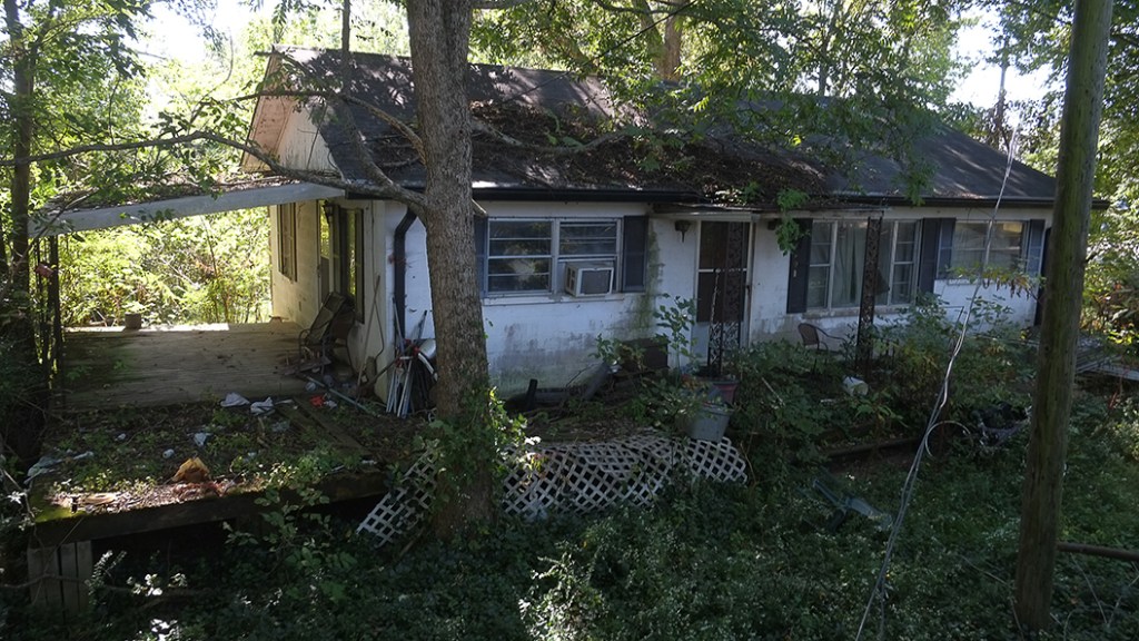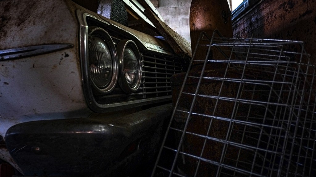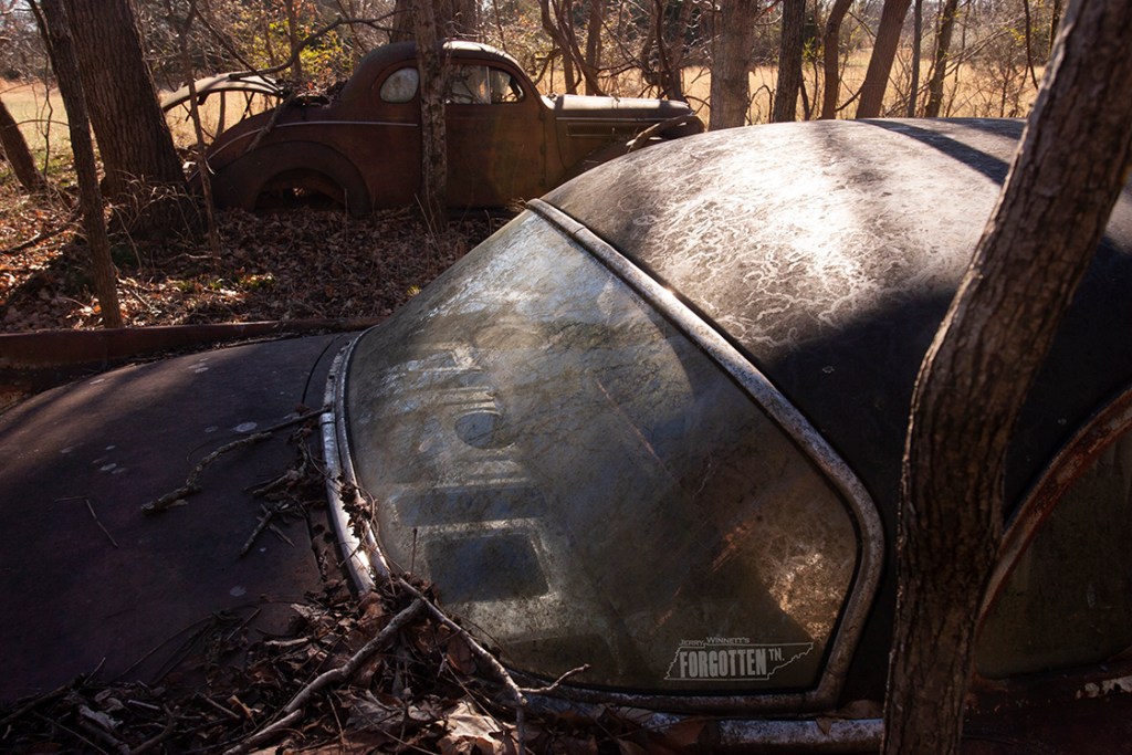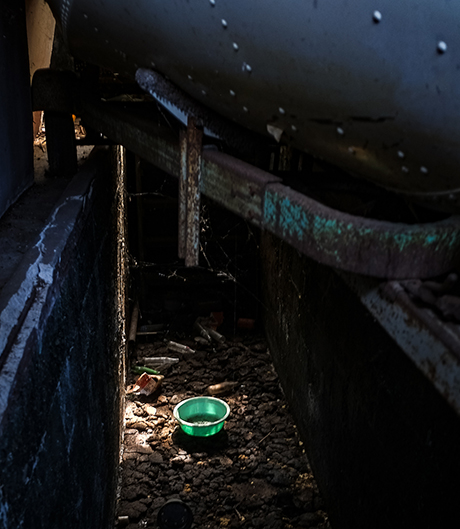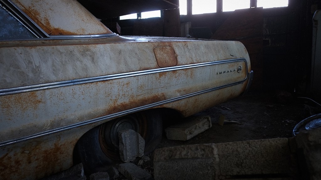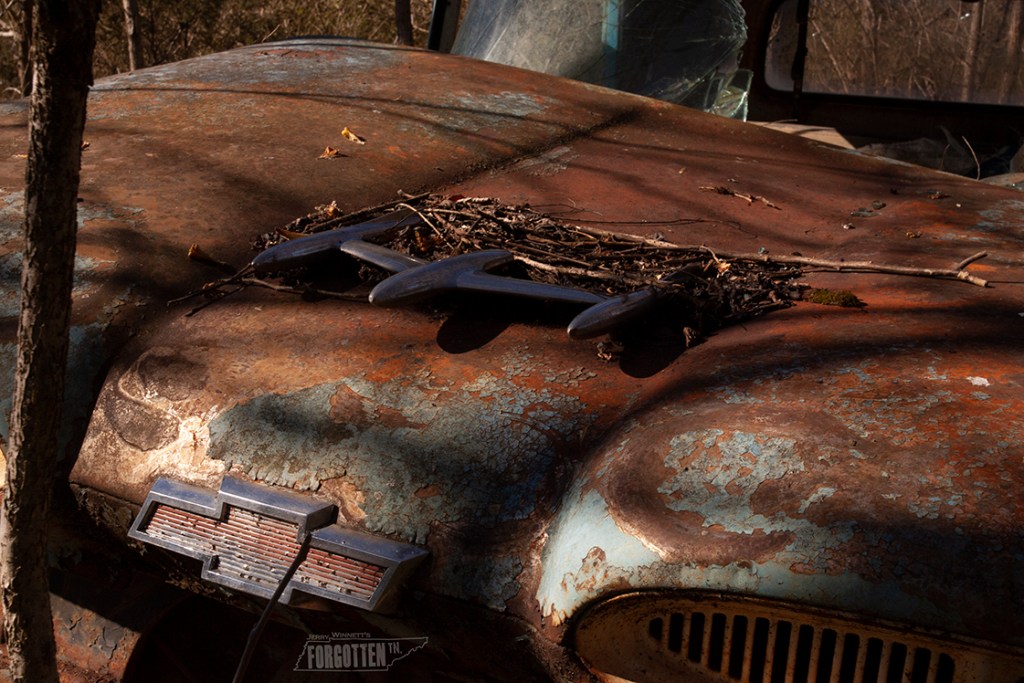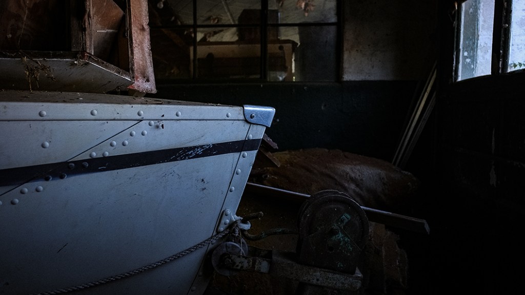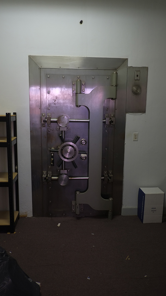 “Grossly slick” is the best way to describe the rotted debris I walked upon while I shot, trying my best to capture the moment for your eyes. Charred timbers lay here and there, streak and bubbled paint covered surfaces. Burnt hair, that was the only thing I could compare the odor of this place. I was nearly done. Perhaps I’d shot some more. Maybe I’d worked up the nerve to try my luck with the rotted floor of the large room to my right. But a reflection caught my eye. Walking back to the doors I ‘d entered I could see a Sheriff’s car parked behind my own car, and a deputy peering into the back windows. This was my cue that it was time to go.
