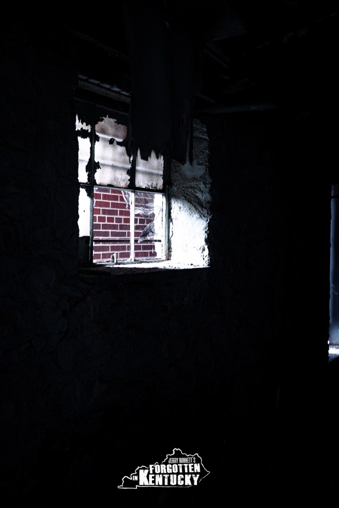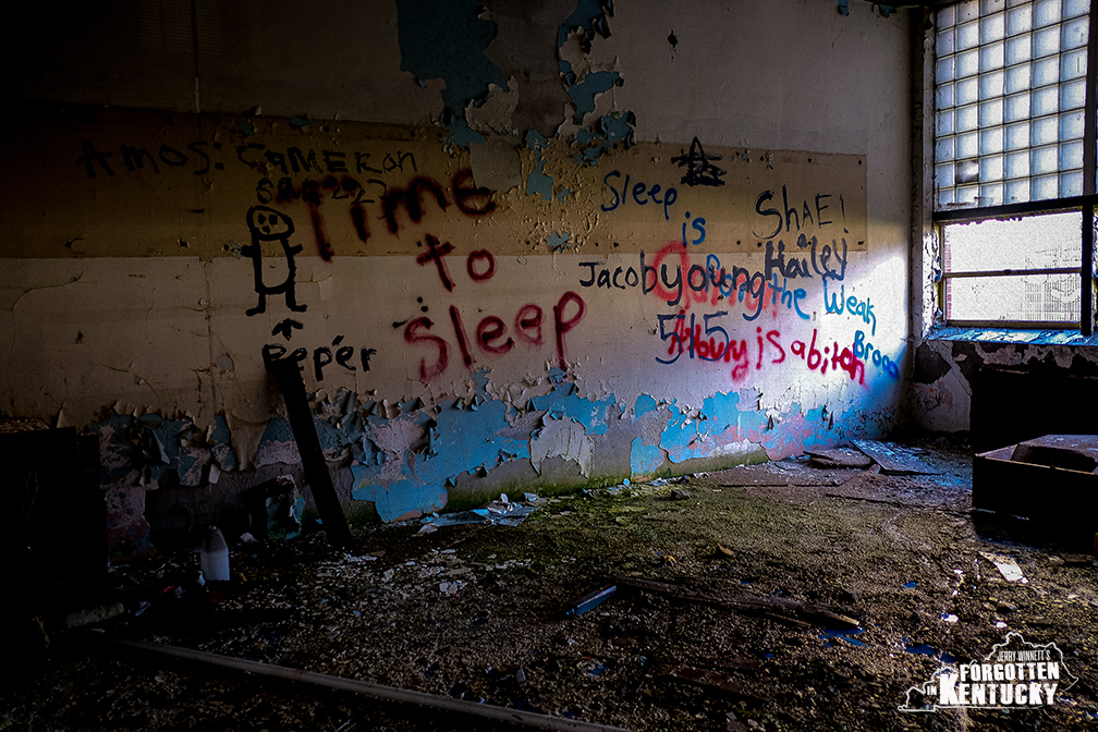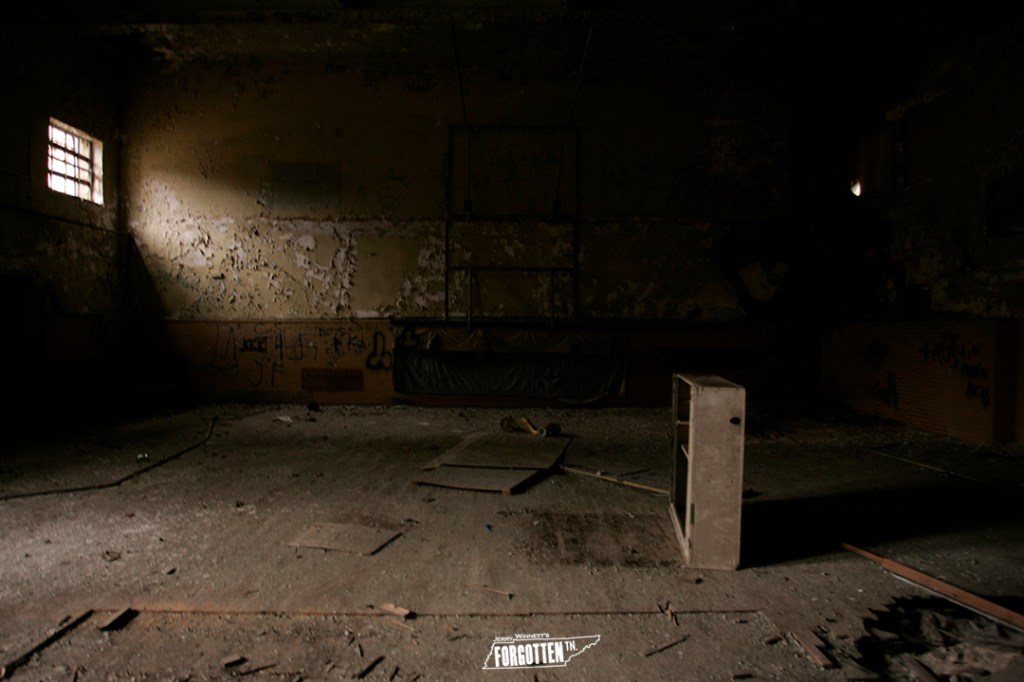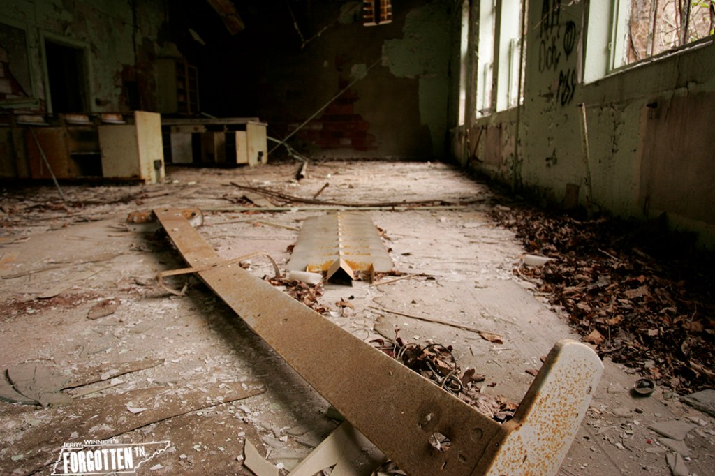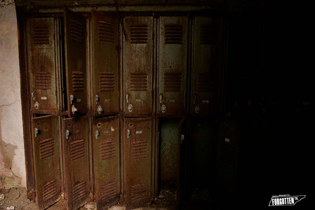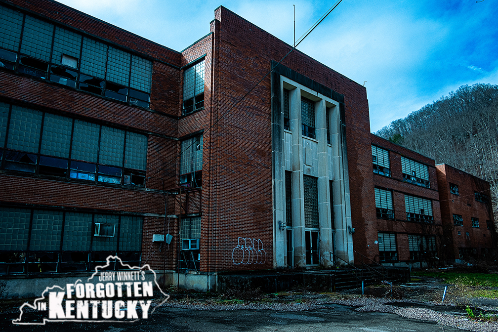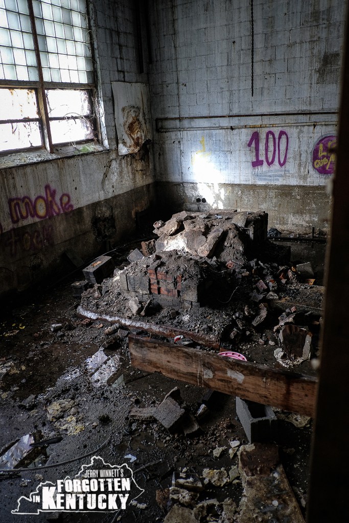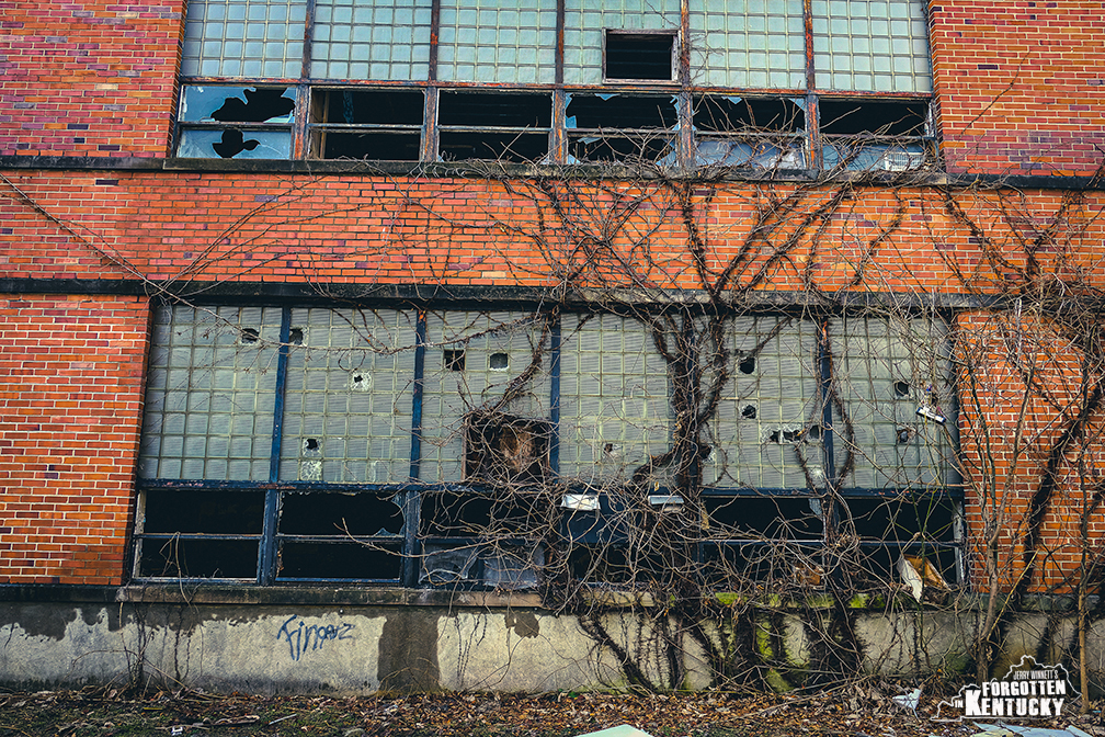 I awoke one Saturday at 630 am. I was bored and didn’t want to watch anything on Hulu or Netflix. So I grabbed my trusty camera, and camera bag, gassed up the Jerry-mobile and headed up into Kentucky. I was on a quest to find an abandoned school in Kentucky near Franklin, KY. Coffee in hand, Stephen King’s Later playing and the miles were being steadily being consumed under the car. How hard would it be to find the aforementioned school? No idea! If nothing else my trip would be enjoyable. About 2 hours later I found myself cruising thru Franklin. Franklin is a small town, pleasant enough. I could see an abandoned high-school, it was tempting but it wasn’t not what I was after I took a left out of town and continued on my way for another 24 mins , maybe more. As I rounded a bend in the road I spied my destination right off the road! I was elated. No fence barred my way. No signs stating “No Trespassing”, (awesome-sauce). The only drawback, there wasn’t really anywhere to hide my car. Ah well.I opened my camera bag, made sure my lil Fuji was ready to go, donned my headphones, made sure my phone was in my pocket and a lamp was strapped to the side of my bag as well. I started by getting a long shot of the school, it’s asphalt black top was cracked, pitted and had most definitely seen better days. On I walked shooting away and noting the broken windows, crumbling bricks, and what looked like a singed roof.