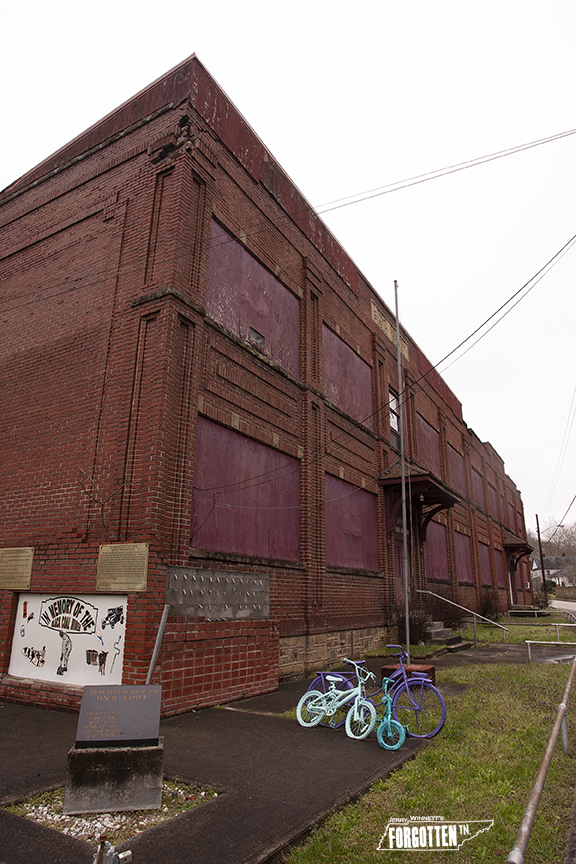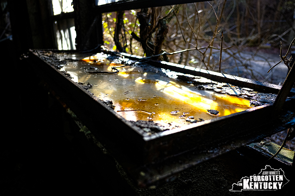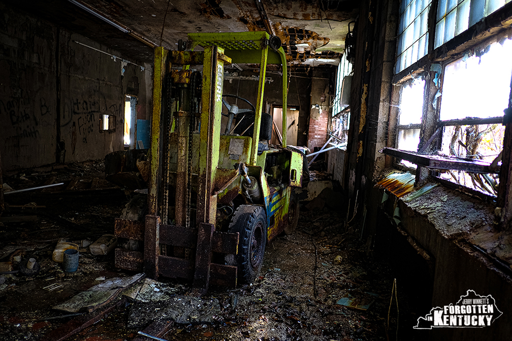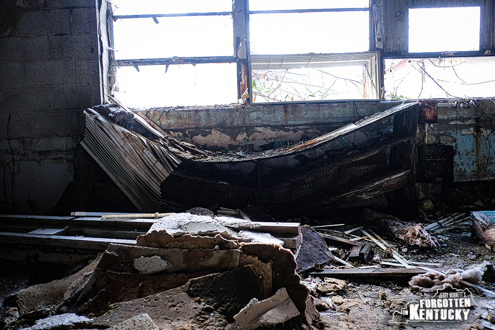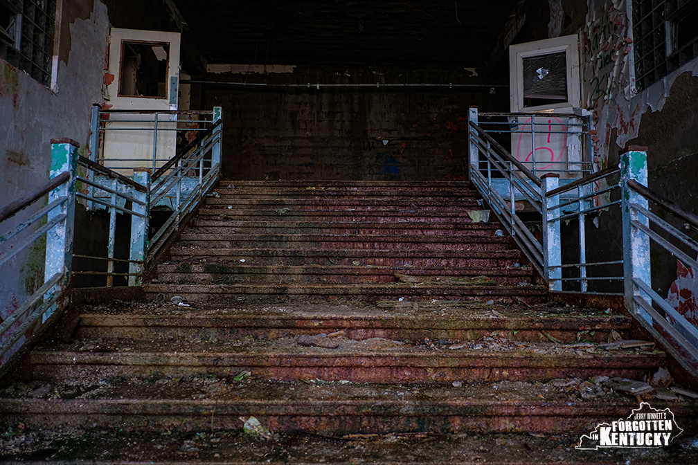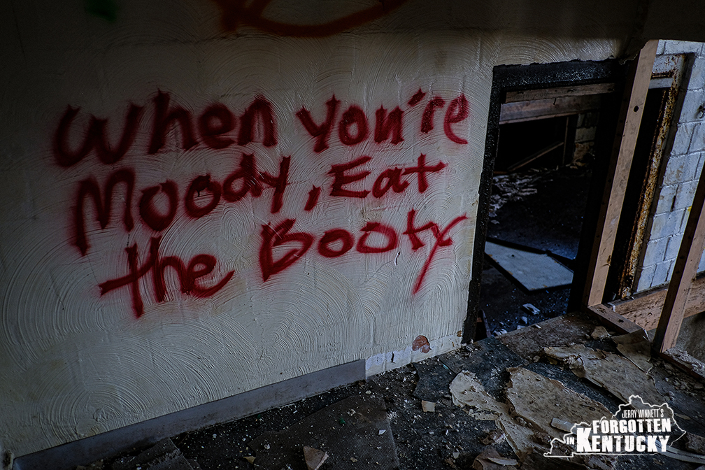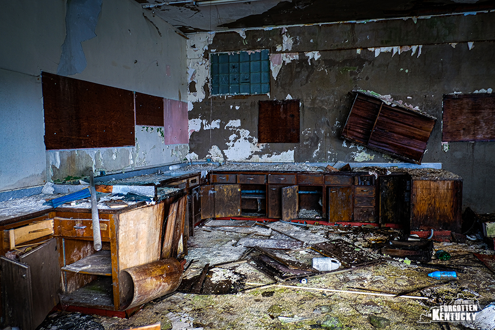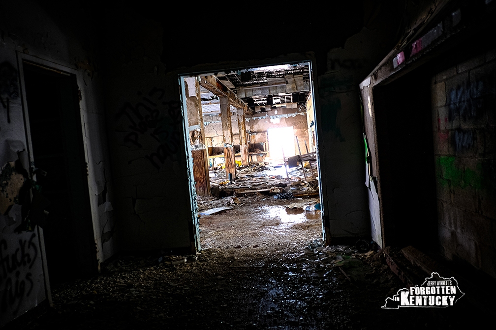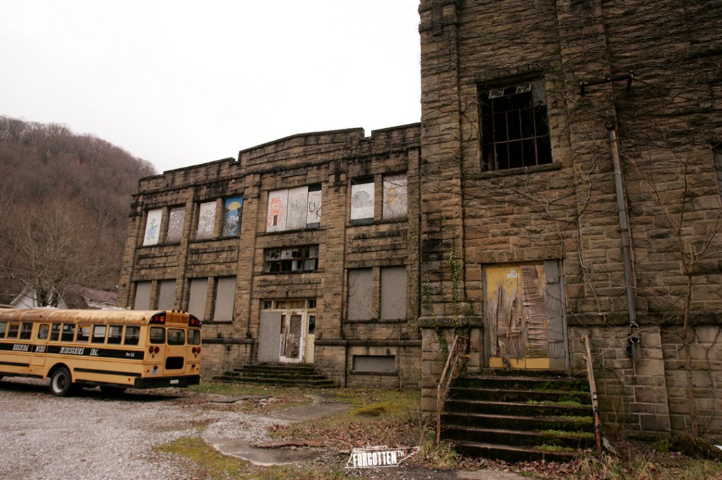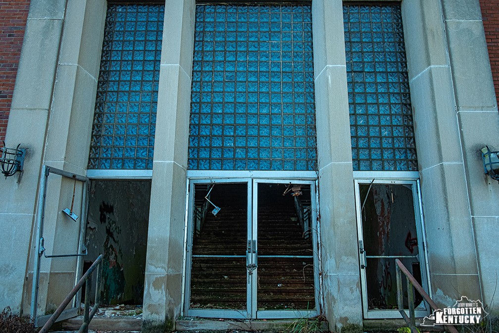 I awoke one Saturday at 630 am. I was bored and didn’t want to watch anything on Hulu or Netflix. So I grabbed my trusty camera, and camera bag, gassed up the Jerry-mobile and headed up into Kentucky. I was on a quest to find an abandoned school in Kentucky near Franklin, KY. Coffee in hand, Stephen King’s Later playing and the miles were being steadily being consumed under the car. How hard would it be to find the aforementioned school? No idea! If nothing else my trip would be enjoyable. About 2 hours later I found myself cruising thru Franklin. Franklin is a small town, pleasant enough. I could see an abandoned high-school, it was tempting but it wasn’t not what I was after I took a left out of town and continued on my way for another 24 mins , maybe more. As I rounded a bend in the road I spied my destination right off the road! I was elated. No fence barred my way. No signs stating “No Trespassing”, (awesome-sauce). The only drawback, there wasn’t really anywhere to hide my car. Ah well.I opened my camera bag, made sure my lil Fuji was ready to go, donned my headphones, made sure my phone was in my pocket and a lamp was strapped to the side of my bag as well. I started by getting a long shot of the school, it’s asphalt black top was cracked, pitted and had most definitely seen better days. On I walked shooting away and noting the broken windows, crumbling bricks, and what looked like a singed roof.
