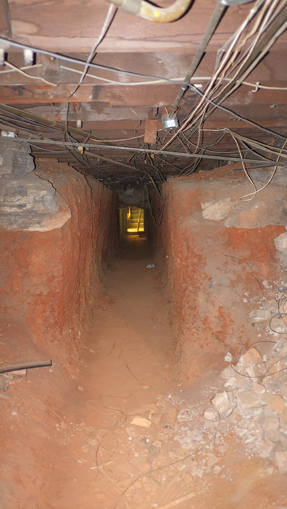 I stood in a darkened stairwell and stepped down into another small chamber. In front of me a stairway would have led up into the building, but the top was blocked off with a large section of the roof. To the right a small room, it’s floor was just hanging on by a thread, here to the roof had fallen and I could easily look up into the grey sky above. I won’t lie, it’s sights like this that can make me rethink the wisdom of my not staying home in bed. to my left another room stood, its floor bare dirt, the light was limited, but hey, the ceiling wasn’t falling down so in I went. I’d like to say that it was an interesting investigation but I’d be lying. I think at one point the room may have housed a furnace, but now it was just empty. Still the lighting made up for the lack of sights, if that makes sense.