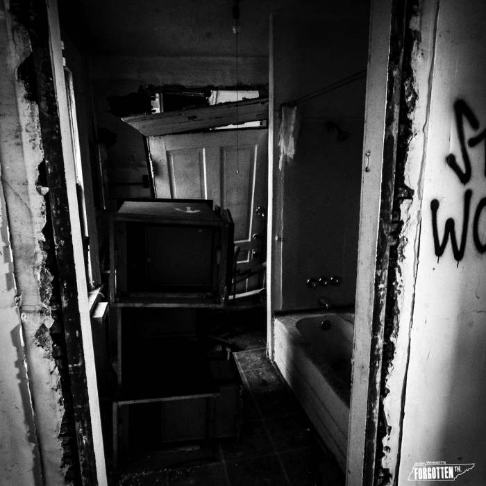 Adam was his name, and yes, he was there to try and get the hotel into shape. He’d heard us and wanted to see who was on the property. This is not as rare an occurance as you might think. In an abandoned hotel in Nashville I’d run into several homeless people and a few law officers as well. Jay and I introduced ourselves as Urbexplorers and published authors who were out looking for material to go into upcoming books.