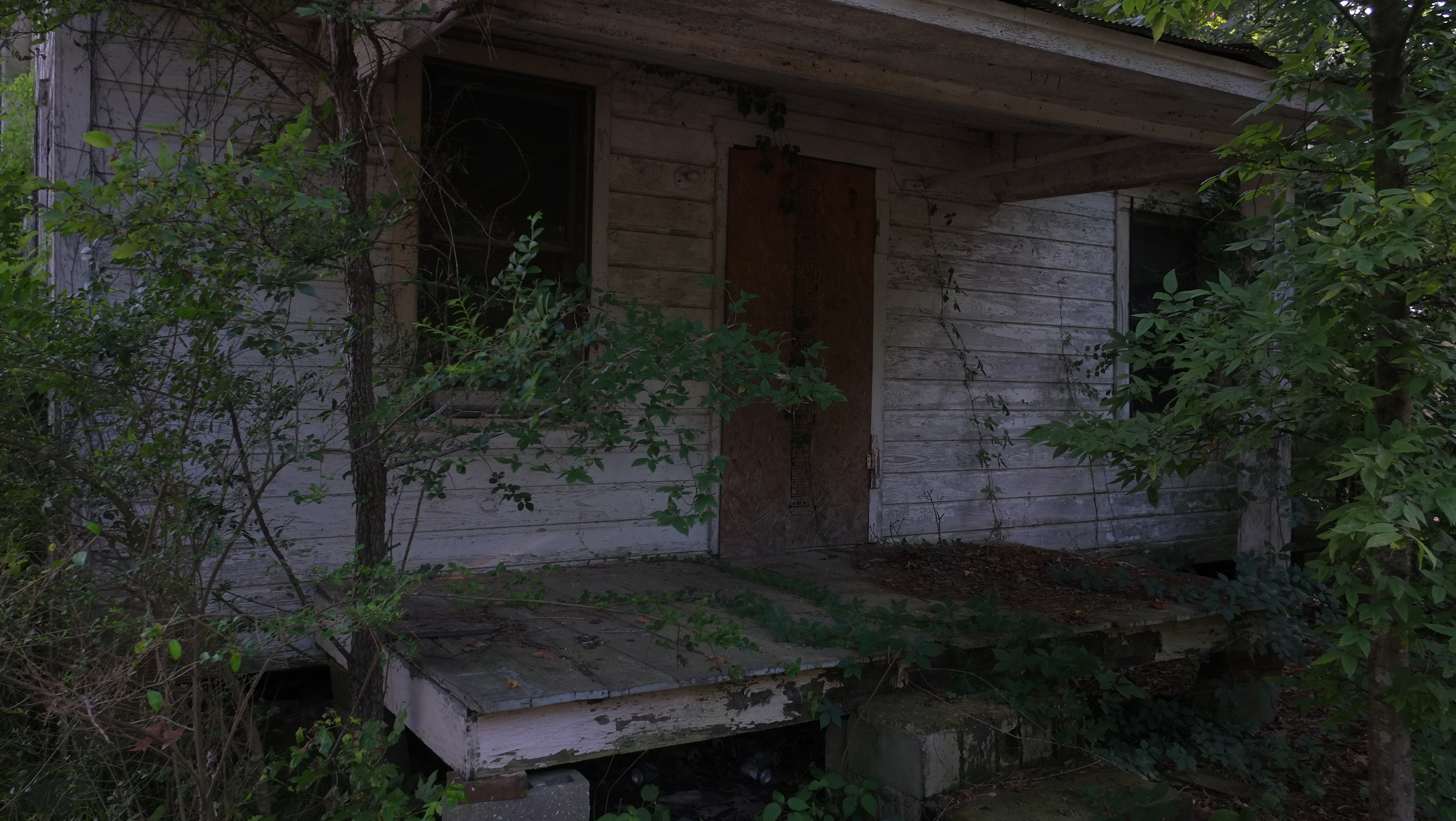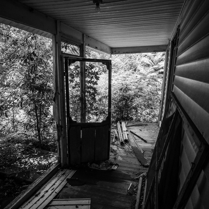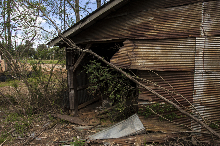 As Jay Farrell and myself were wrapping up another Alabama trip, we found ourselves cruising on US Hwy. 17 ambling down a hill and around a long curve. That’s when Jay spotted it, the last house we’d decided to explore for the day. The house was shades of grey, rust and black, honestly it was damn near perfectly camouflaged from us. Parking required us to be on the absolute edge of a crumbling shoulder. Grabbing our cameras we hopped across a narrow embankment and stood for a second admiring a once beautiful and striking abode. But that time must have been at least 100 years ago. The elements and time were doing their level best to consume it all. Entering the door was a questionable act. The roof over hanging the porch had partially collapsed onto the porch’s floor, and the floor was not faring much better. Luckily for Jay and I the porch was only 8 inches or so from the actual ground.