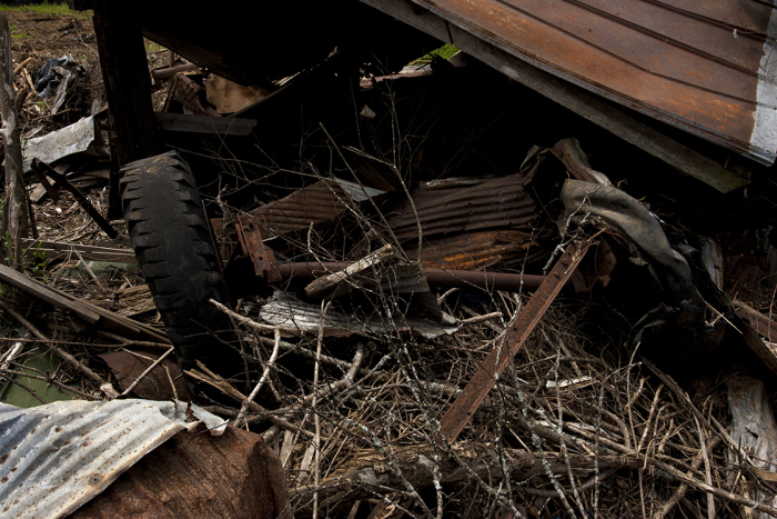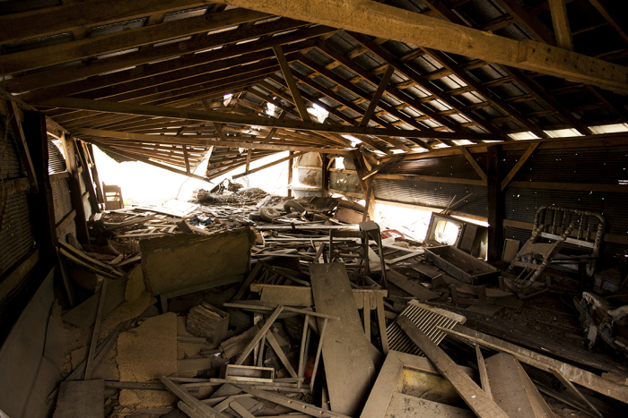 In one room I came across a comfortable looking recliner while in another room a mattress was testament that at some point someone had used this old house as a place to take shelter from the elements. But considering the lack of windows, and the gaps in the ceiling and floors I’m not sure it was much of a shelter.