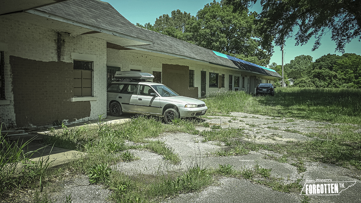 Right above our heads was what I assumed to be the living quarters. We could see the open door to the space because the wooden floor above was for the most part gone. The condition of the 2nd floor pretty much ruled out exploring it. So with a bit more of shooting this and that we moved on and shot the outside of the Garage House. It would turn out we were both right, more or less. According to JoshWhitehead’s site http://cremedememph.blogspot.com/2018/01/journey-motel-court.html the building was a service garge and it is likely the mechanic stayed in the apartment above.