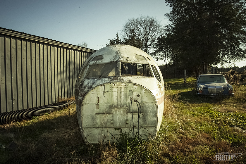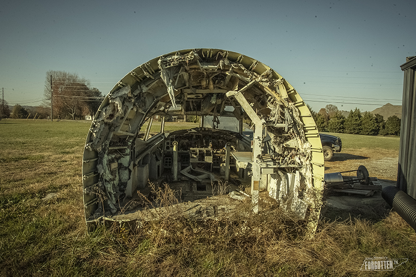 It’s Thanksgiving 2018, and how do I celebrate it? I hopped in the car with my camera and started hunting! Turkeys? No, forgotten places and roadside oddities! Let’s start this off with true roadside oddity gold, a passenger plane’s cockpit! Yes, you read that right. Wendsday morning I set out to do a little driving and ended up going down a backroad I usually try to avoid due to the dump trucks that go up and down the road constantly. I was cruising at a sedate 25 mph and glanced to the right and saw a passenger plane’s cockpit. I almost broke my neck doing a double take. I sat there in the middle of the road starring at a dairy barn with a plane’s cockpit sitting beside it. Turning into the gravel entrance I walked over to a house that sat on the barn’s otherside and knocked on the door to ask if I could shoot the plane. The woman of the house remarked “Go ahead, that thing is just a sittin there”. Camera in hand I did just that!